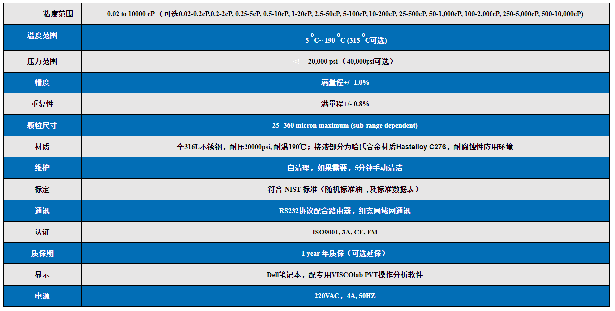 高壓粘度計(VISCOlab PVT)技術參數(shù):