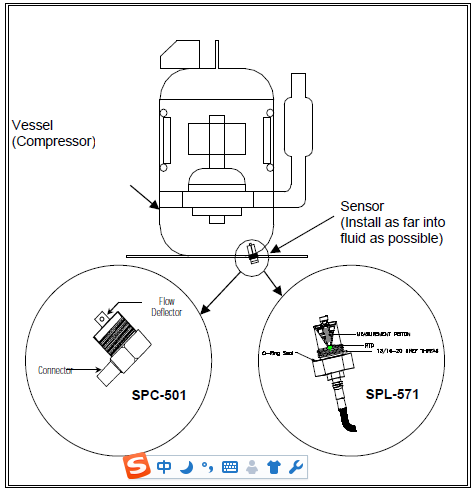 SPL571 OILSENSE可整齊地安裝在1/2英寸的塊狀接頭或三通中。可在0.5至500厘泊(cP)之間的6種不同20:1粘度范圍內進行測量。建議流過傳感器的液體流量高達1.0英尺/秒。